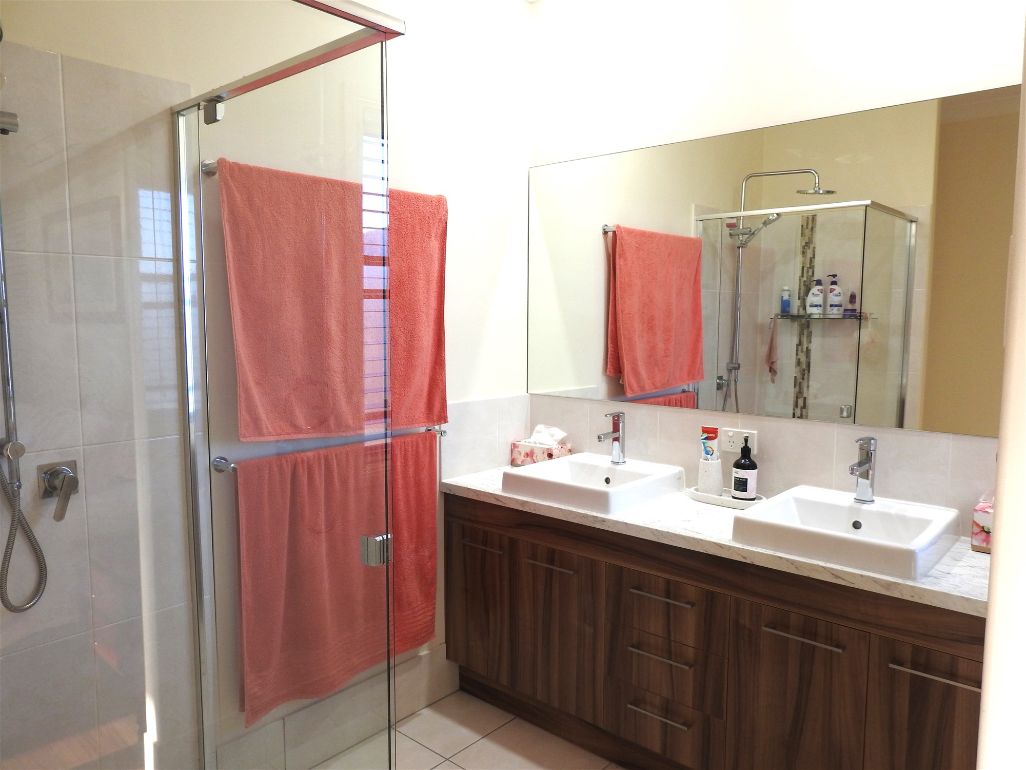 The main bedroom is positioned to capture the lake views. It has a walk-in wardrobe and a generous Ensuite. It features raised double Cotto basins, elegant mirror, seamless frame shower and Rain Head Shower fittings. There is a part petition for the toilet.