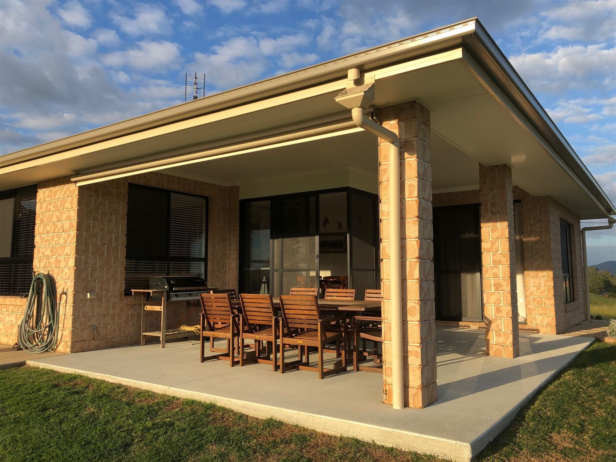 The property Features include Solar hot water system and 6kw solar power system. Three 22,700 litre rainwater tanks give ample water supply. Home sewerage treatment plant is serviced three or six monthly.