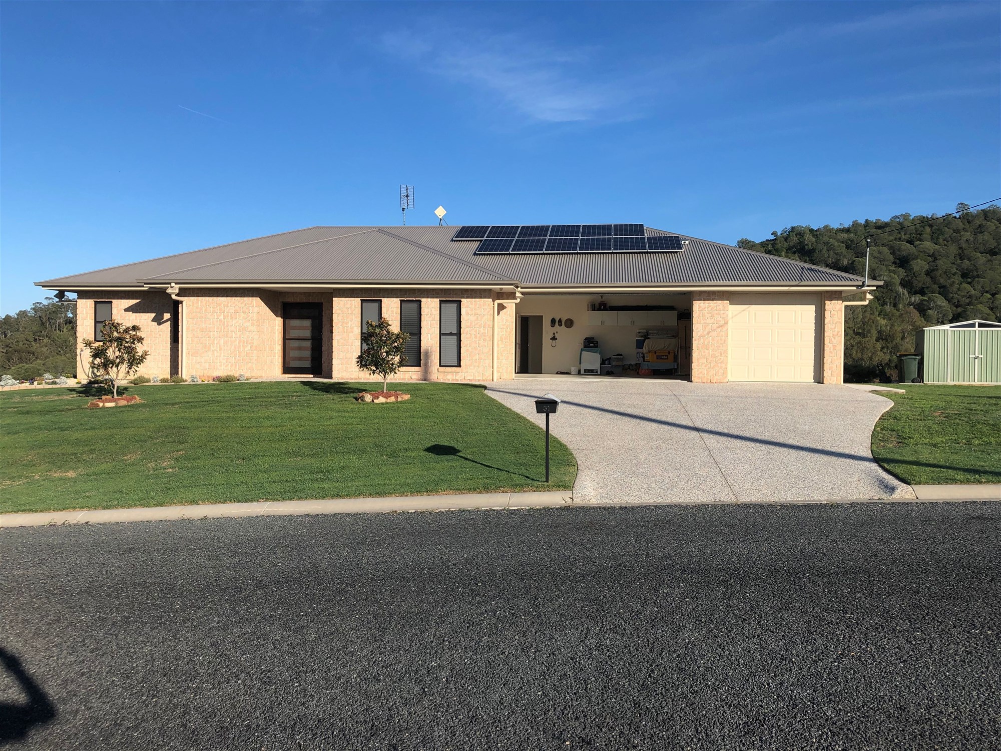 An exposed aggregate driveway gives ample additional parking spaces for family and friends.