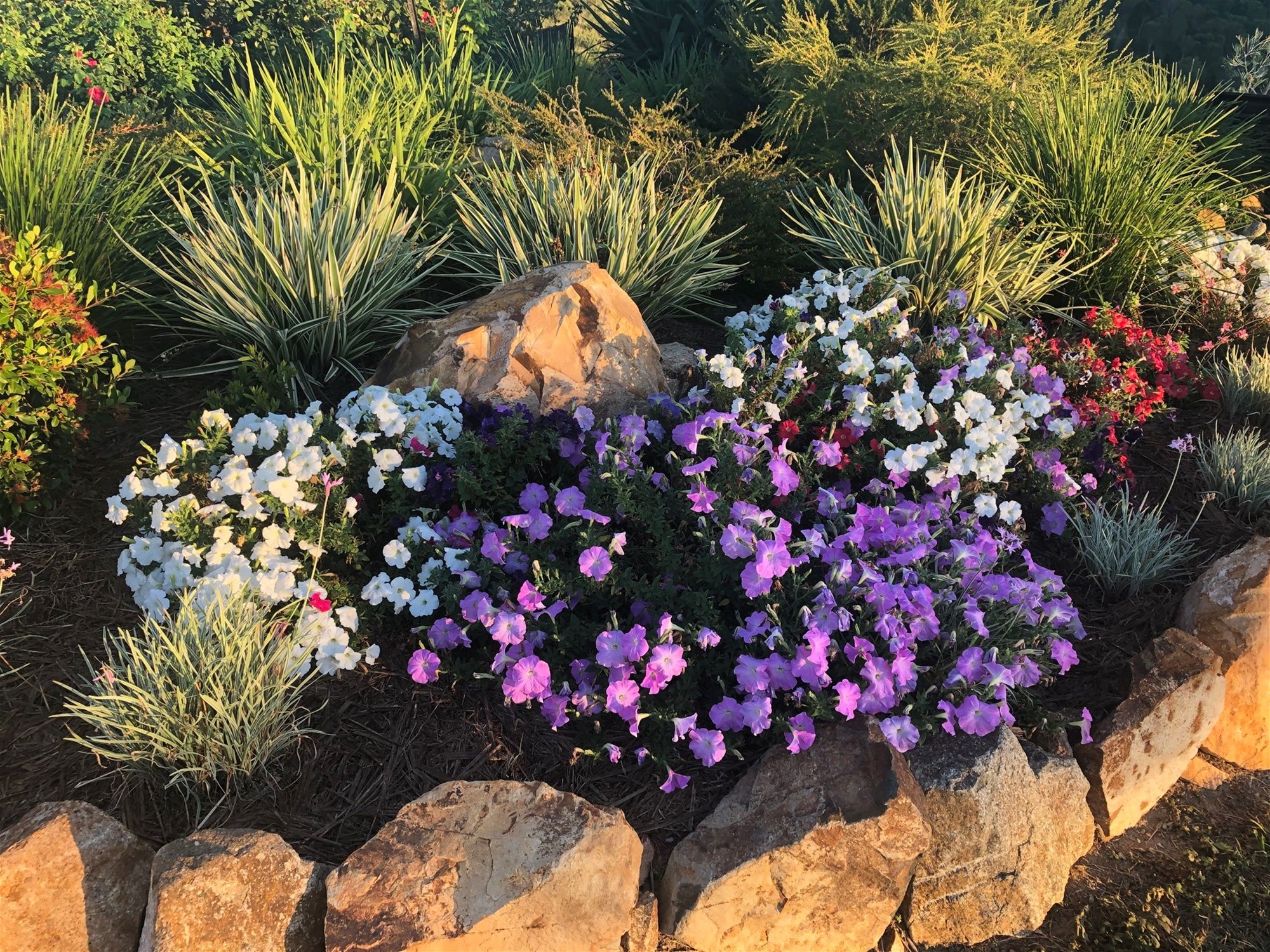 Three Jacaranda trees and three Little Gem Magnolia trees grace the property. An established Rose Garden gives a sense of elegance. Lovely bright coloured petunias border the front pathway.